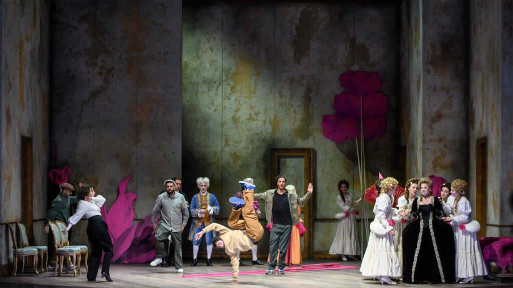 «But the most striking aspect of the evening was its coherence. The musical and dramaturgical transitions between the old and the contemporary were seamless, thanks to the superb coordination of the joint directors Geréb and Schoeck. The fourth wall was broken so many times, and so wittily, that it soon seemed utterly natural, and I’ll never watsch an 18th-century ballet interlude again without wondering how the breakdancers of Essen would have done it.»